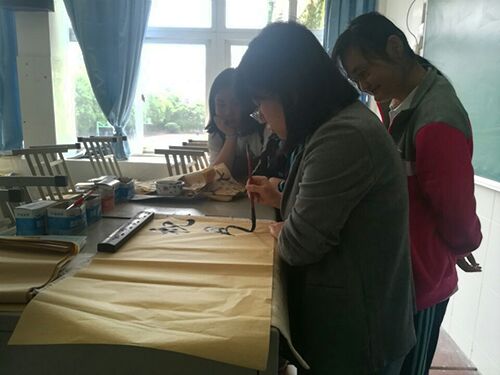 在书法社小编也看到社员们在社团里积极学习书法的样子,手执毛笔,耐心地书写每一个字。