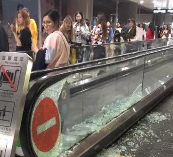 上海虹桥机场大量明星粉丝前来接机,结果把玻璃挤爆了现场的目击者称,整个航站楼里都是年轻男女,有的拿着粉丝牌,有的拿手机拼命拍,一看就知道是粉丝,一楼和二楼站满了人!狂热的粉丝甚至将航站楼内的自动步道玻璃都挤爆了。